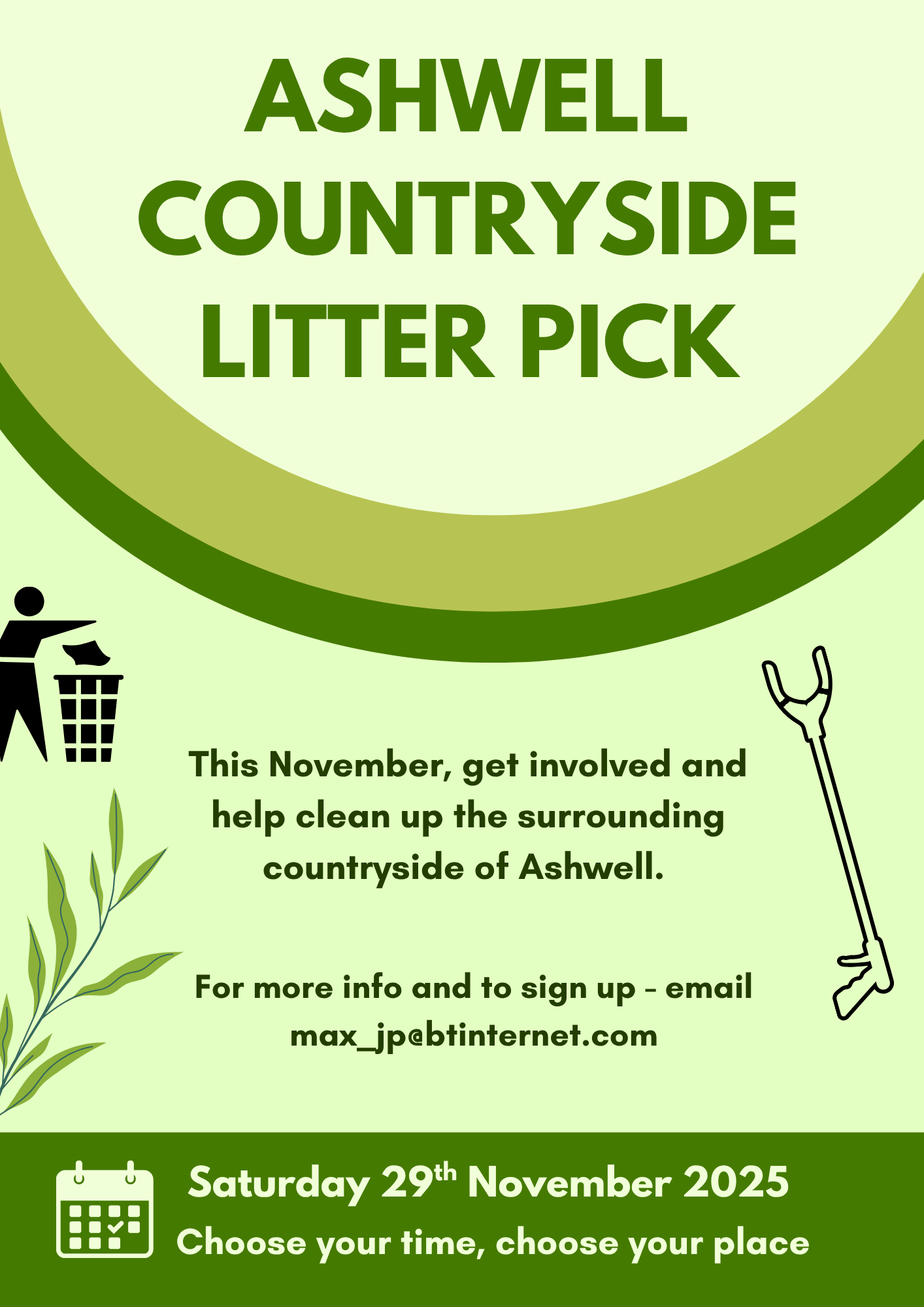 This November, on Saturday 29th November. a local resident, Max Patterson, is organising a litter pick of the surrounding countryside of Ashwell. He is keen for volunteers to help clean up the roads and footpaths that surround our village and that sadly have become quite littered.