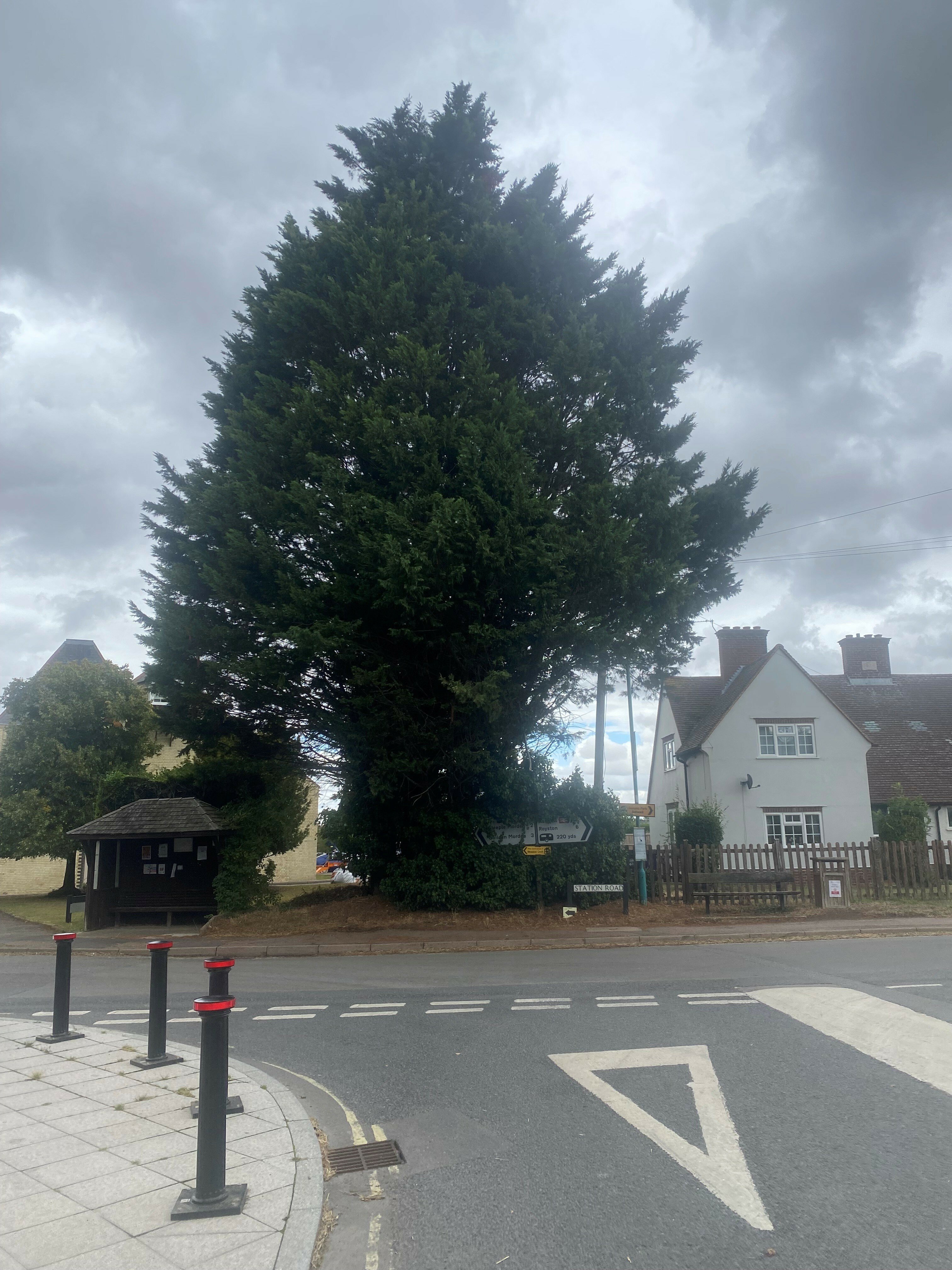 The Parish Council have raised an application for permission to fell the Cyprus tree opposite the war memorial on Station Road. This is because the growth of the tree covers the street light and road sign and must be periodically cut back.